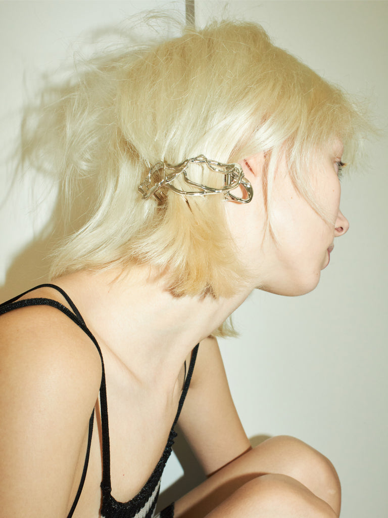 引き裂かれ、溶けたモチーフを表現したヘアクリップ