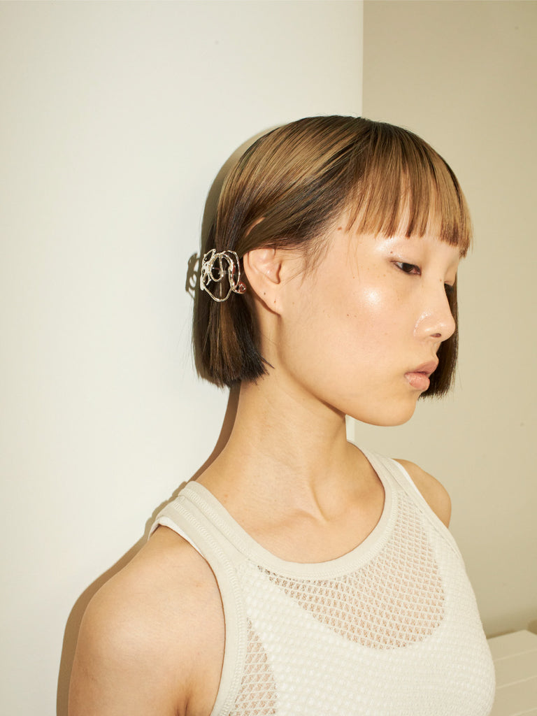 引き裂かれ、溶けたモチーフを表現したヘアカフ