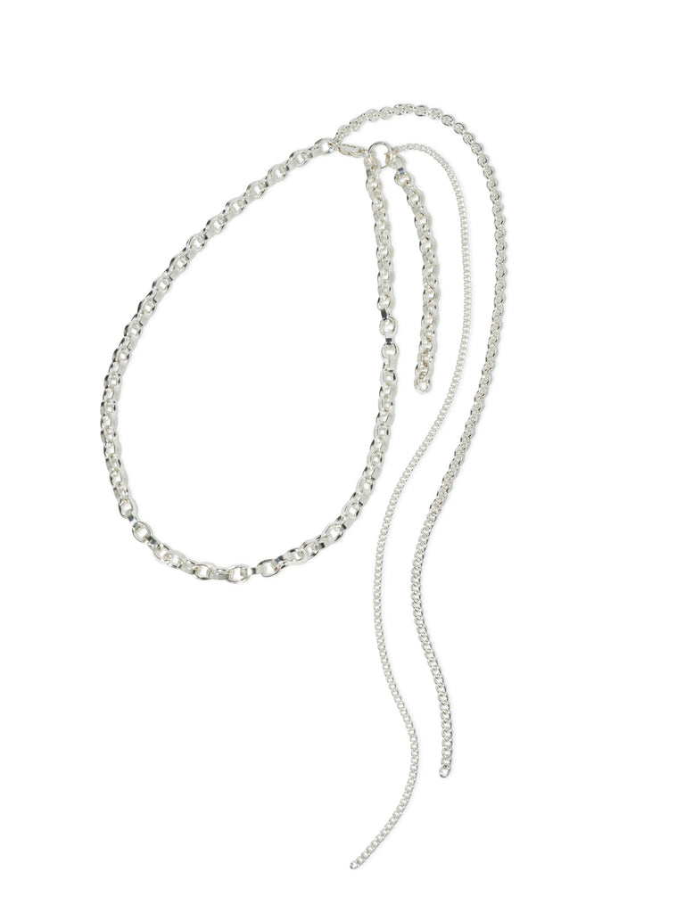 You can freely use the chains on both sides by lowering them to the front or turning them to the back.