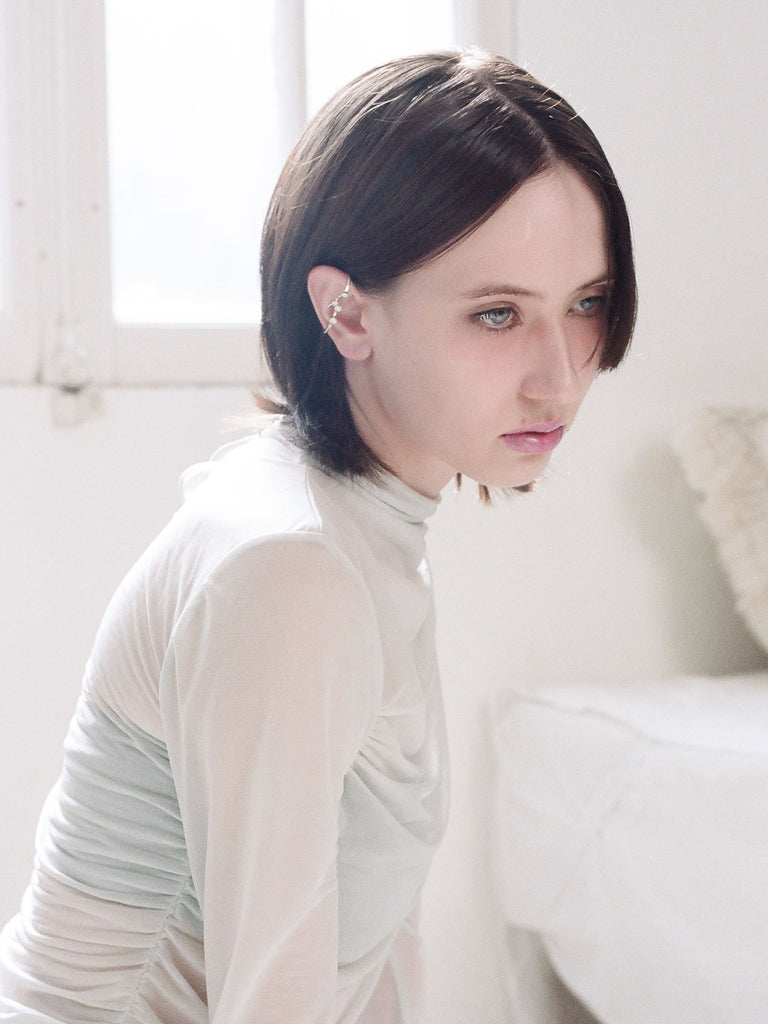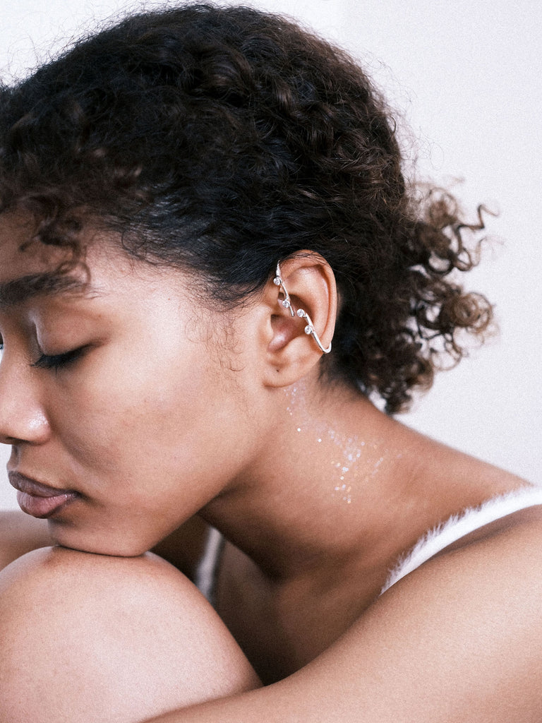 有機的なラインとキュービックジルコニアで表現されたデザインイヤカフ
